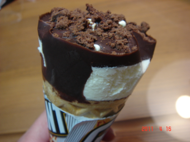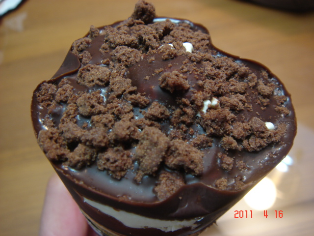 ビスキーチョコがアイスの側面に・・・って説明にもやられた。
